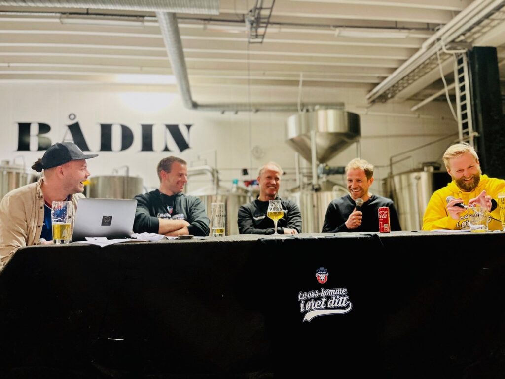 STARTEN: Snorre Felldal, Jonas Aune Sundet, Runar Berg, Ørjan Berg og Frank Amundsen under en live-pod i Bodø. Foto: Privat